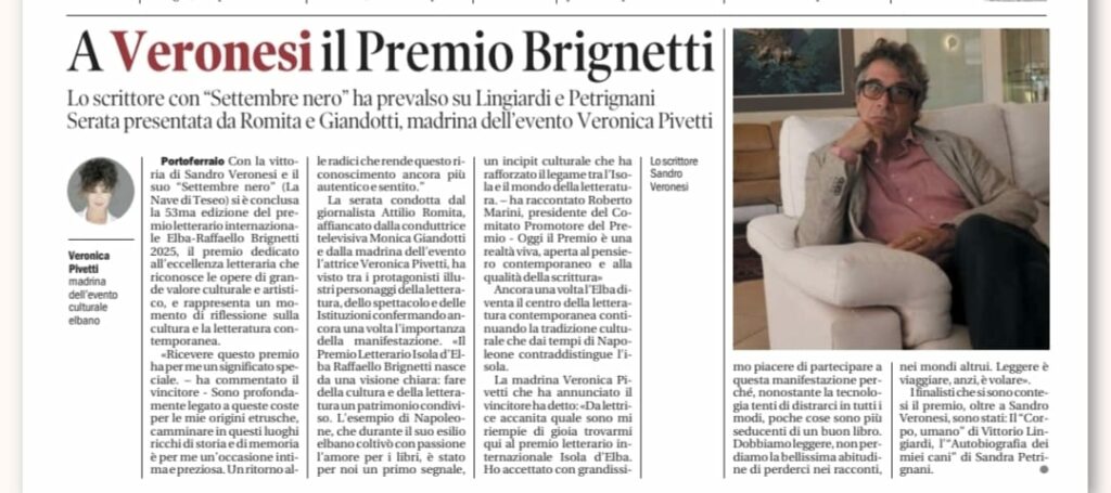 - LetteratitudineNews – PREMIO ISOLA D’ELBA–RAFFAELLO BRIGNETTI 2025: vince Sandro Veronesi