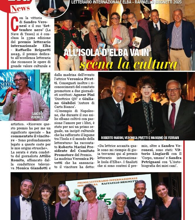 Corriere Fiorentino – La cerimonia di premiazione all’Arena Linguella di Portoferraio. Veronesi con «Settembre nero» vince il premio letterario Isola Corriere della Sera – A Portoferraio. […]